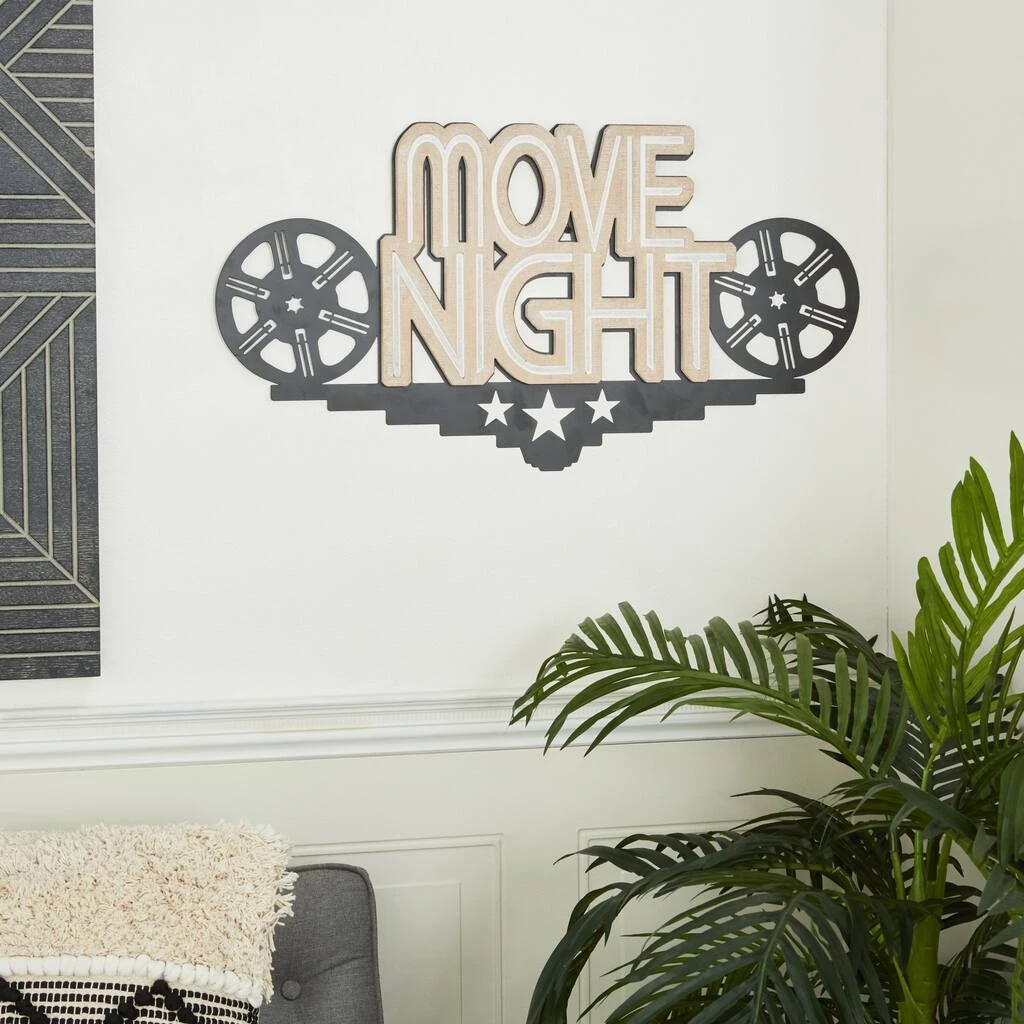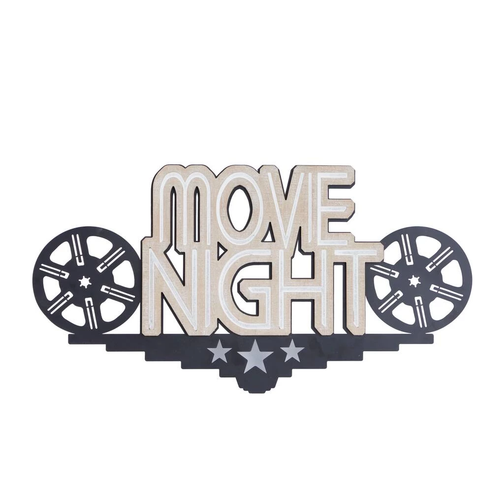 Give your home spaces a classic and charming vibe with this home decor sign displayed on your living room or bedroom walls. Create an excellent focal point on your walls paired with some cute accent tables, and level up your home with this amazing wall Decor. Place this on any blank wall space adding both texture and depth to your home. These items come shipped in one carton. Detailed back metal frame is attached with carved wooden typography. Easy to hang with 2 back keyhole hooks. Suitable for indoor use only. Industrial design. Showcases whimsical and bold “MOVIE NIGHT” typography.