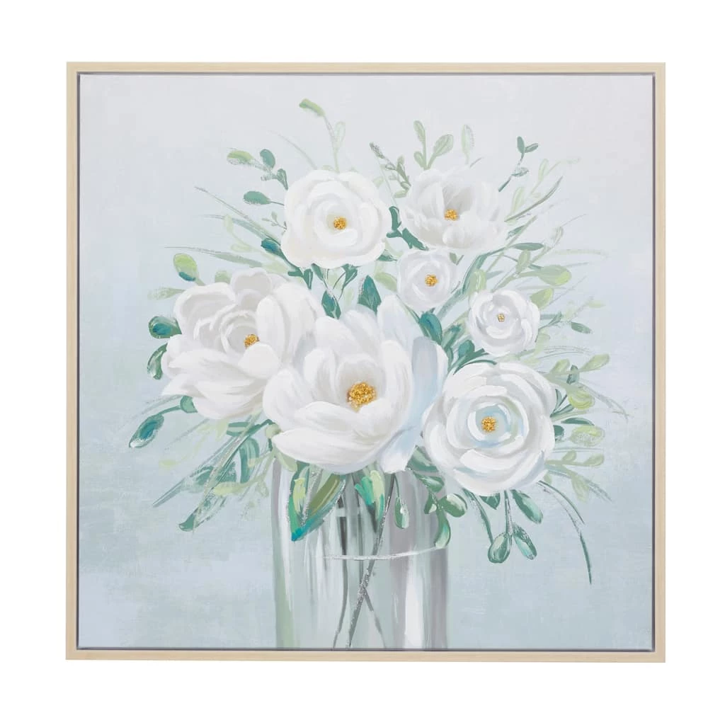 Striking and whimsical, this floral wall art will surely bring your walls to life and add personality to your interior. This wall art exude natural beauty and sophistication in both color and composition. Showcase your personality and turn your walls into an art gallery with this impression wall art. This item comes shipped in one carton. The floral canvas art is securely encased in a square frame that can be hung on the wall. Item comes with a metal hardware at the back for easy and secure hang. Suitable for indoor use only. French Country Style.