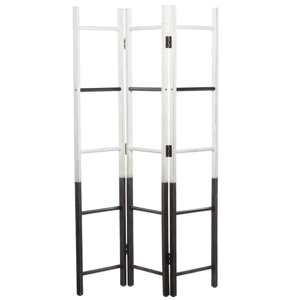 This mobile screen divider will add much needed style I your minimalist living room, home office, or kitchen in a low-profile design. The best way to break uneven spacing in your home and create depth in a wide open floor plan. Create privacy within your home in the most efficient and stylish way with this room divider screen. Designed with black rubber stoppers at the base that prevent scratching furniture and table tops, as well as sliding around. Suitable for indoor use only. This room divider features 3 panels. Farmhouse themed.