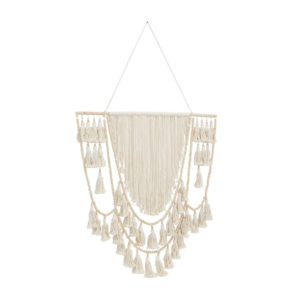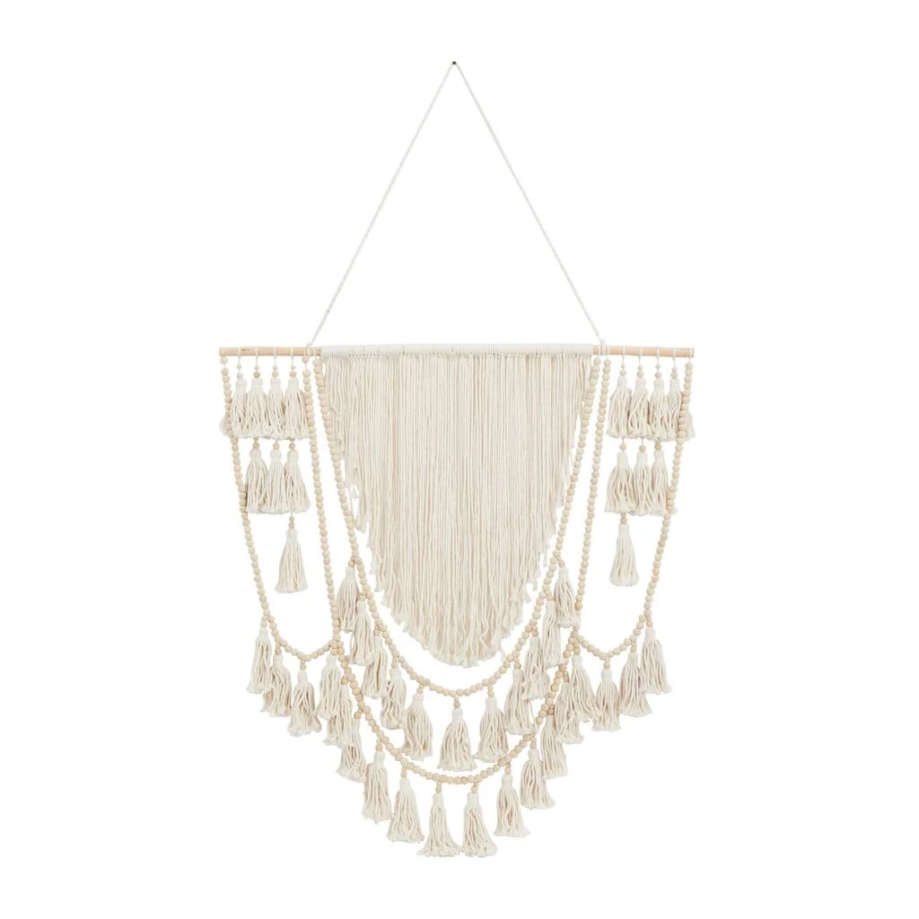 Give your home a premium look with this macramΓ© wall decor that will provide your wall with a distinctive focal point. Place this on any blank wall space adding both texture and depth to your home. Create a balanced space in the most creative way with this expertly crafted wall decor for captivating focal point. This item comes shipped in one carton. Due to the handmade nature of this item, no two will be alike, there will be slight differences in shape, size, and color (Is it handmade?). Item comes with a sturdy thread for easy and secure hang. Suitable for indoor use only. Made in Indonesia. Traditional Theme.