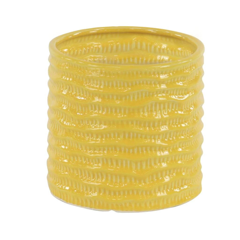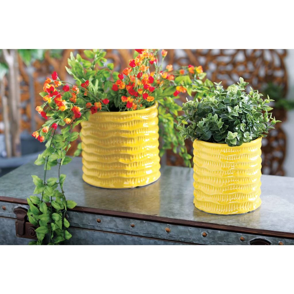 These decorative planters are sure to add bundles of charm to your home. Beautifully detailed, the set features glossy yellow cylindrical pots with horizontal ribbed details. These planters are made out of porcelain with solid construction, offering durability. Jazz up coastal themed spaces using this set of charming accent pieces that are ideal for outdoor use.